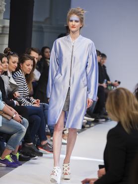 Szegedi kollekcióját izgalommal vártam, az év divattervezőjét ugyanis már kérdeztem korábban arról, mit készít 2014 telére. A 90-es évek inspirálta, friss, színes kollekció első ránézésre nem tűnik téli kollekciónak, sok a világos szín, például a pasztellkék, lazacpiros, ezüst és fehér. Printek terén a terepminta, a pöttyök és a csíkok, anyaghasználatban pedig a nehéz vásznak, a rojtos felületek, a vízlepergetős szövetek és a printelt neoprén alkotják a kollekciót. A sziluettekben a ceruzaszoknyák, cigaretta-nadrágok és oversized felsők jellemzőek.