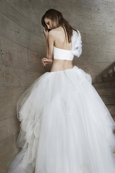 A terjedelmes alsószoknyáktól és a habos-babos, fodros menyasszonyi ruháktól kicsit elrugaszkodott Wang azért még így is a klasszikus menyasszonyi vonalon belül mozgott, aminek köszönhetően a túlvilági, jövőbe tekintő kollekcióhoz még mindig el tudunk képzelni egy puccos, hercegnős lagzit. Bár valószínűleg ezeket a sokoldalú ruhakölteményeket nem úsznánk meg olyan baráti áron, mint a H&M nemrég piacra dobott 20 ezer forintos menyasszonyi ruháját.