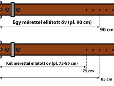 Az öv méretét a legtöbb esetben centiméterben vagy inchben (~2,5 cm) adják meg és a legritkább esetben kap a ruhákhoz hasonló, S-M-L-stb. jelölést. Mire vonatkozik ez a számadat? Az öv csat felőli kezdete és a középső lyuk közötti távolságot mérik vele. Tévedés tehát, hogy ez a teljes hosszt jelentené és amiatt alakult így, hogy a feljebb és lejjebb tolva viselt nadrágunkhoz is passzoljon.