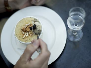 A vége éppen ehhez az ételsorhoz illett. A Gurjev kása - noha alap, hogy nem hasonlítgatjuk az ételeket -, afféle tejbegríz, itt ciberével (híg Békési szilvalekvár), magvakkal, és fél szilvadarabokkal, mellé Békési szilvapálinkával. Az utolsó kanálig.