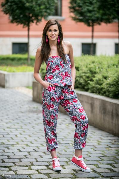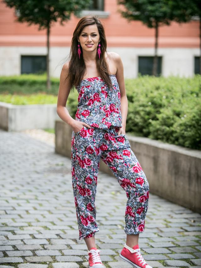 Egy ilyen mintás overál nagyon jó befektetés nyárra, mert így nem kell sokat gondolkozni az öltözködésen, elég csak felkapni az egyberészest egy egyszerű cipővel és táskával, és már fel is vagyunk öltözve! Azért egy színben illő fülbevaló sem árt, de semmiképp ne halmozzunk túl sok bizsut a nagymintás ruha mellé. Hétköznapi rohangáláshoz akár a sportcipő is jó választás, ha buliba indulunk, elég azt lecserélni egy magassarkúra.