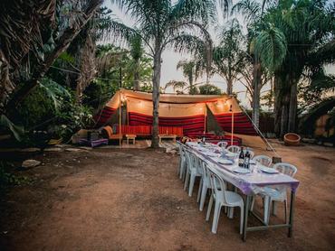 Ők ketten már négy éve alkotnak egy párt, néhány éve pedig Tel Aviv-i otthonukat egy elképesztően cuki falusi házra cserélték, amely leginkább Hófehérke és a hét törpe otthonára emlékeztet, közel-keleti kiadásban. Eyal mindent maga ácsol és barkácsol, felesége pedig (talán Hófehérke mintájára, a helyi őzek és madarak segítségével) mindent kicsinosít – így történt ez az udvarral is, ahol autentikus sivatagi sátorban, almás dohánnyal alaposan megpakolt vízipipával, kerti zöldfűszerekből főzött teával, arab kávéval és persze jéghideg sörrel várják a vendégeket.0