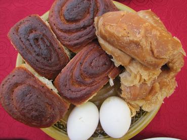 6. A köretként tálalt főtt tojás egy vízzel félig megtöltött hőálló edényben, egy éjszakán át pihenjen a sütőben, akárcsak a dzsahnun. Tálalás előtt az egyetlen teendő a friss paradicsomos salsa szósz elkészítése: a félbevágott paradicsomokat a sajtreszelő nagylukú oldalán egy tálba reszeljük, majd olívaolajjal, sóval, esetleg préselt fokhagymával ízesítjük. Egy kiadós dzsahnun-reggeli után pedig egy jó erős fekete kávé és egy finom vízipipa enyhíti a kajakómát.