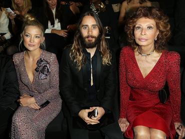 Giorgio Armani legalább annyira kedvelt hollywoodi körökben, mint Karl Lagerfeld, így az ő bemutatóján is sok olyan híresség vett részt, akik a vörösszőnyeges gálákon rendszeresen Armani Privében jelennek meg. Például Kate Hudson, Elsa Pataky és Chloe Grace Moretz. Jared Leto Sophia Lorent ölelgette az első sorban, Juliette Binoche melltartót villantott, Pink visszafogottan pózolt.