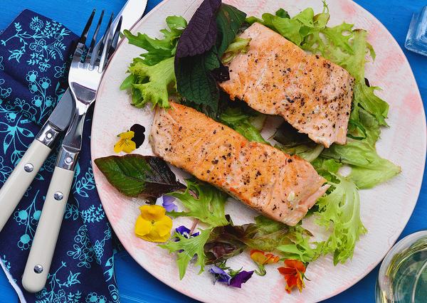 - Addig hagyjuk sülni (nem kell mozgatni), amíg a hús színe nagyjából a szelet közepéig kivilágosodik. Ez körülbelül 3-4 perc. Ekkor óvatosan megfordítjuk a szeleteket, a másik felének is adunk nagyjából 2-3 percet a serpenyőben. A halszeleteket frissen tálaljuk, jó mellé a saláta és a friss bagett vagy rozskenyér.