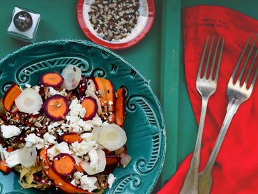 Az ember nem is gondolná, milyen nagyszerű salátát lehet rittyenteni néhány perc alatt két szál répából. Ha pedig sikerül a zöldségesnél vagy egy termelői piacon kifogni néhány színes répát hozzá, rendkívül látványos is lesz. A magkeverék mindenképp kell hozzá, az adja meg az étel karakterét. A tetejére morzsoljunk kedvenc sajtunkból (lehet, juh vagy kecske is), de hirtelen sült húst vagy főtt tojást is kínálhatunk hozzá. Jól csúszik mellé a vajas kenyér, hogy laktató is legyen.