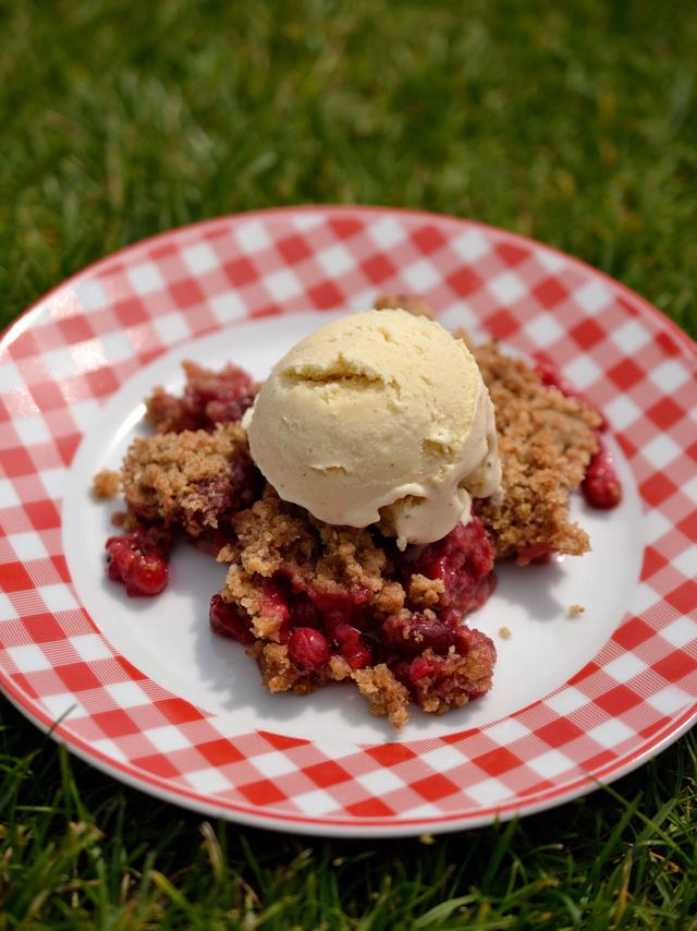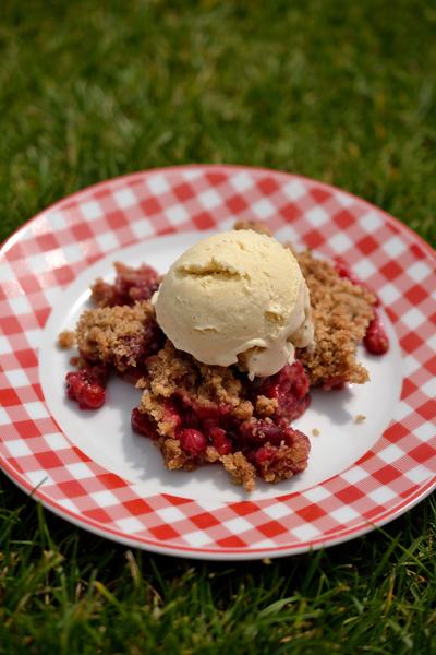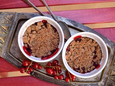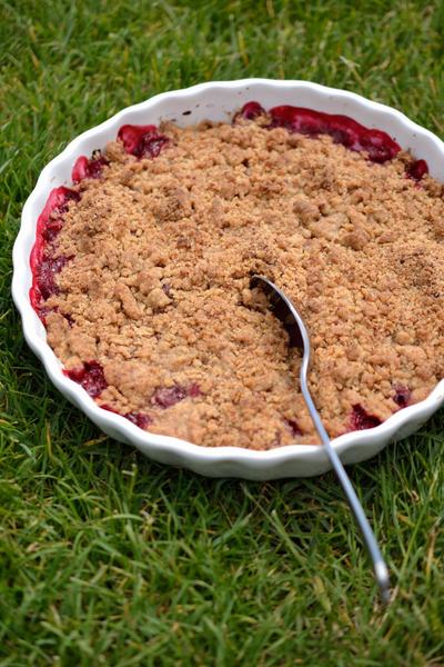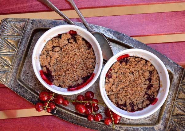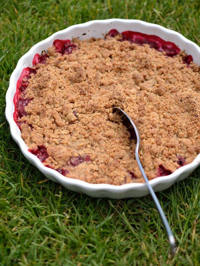 A morzsasüti, azaz a crumble nevű angol sütemény nagyon kevés munkával elkészíthető, és nagyon gyümölcsös, könnyű édesség. Alulra kerül a gyümölcs: én általában valamilyen savanykás piros bogyós gyümölccsel szeretem a legjobban (meggy, málna, ribizli, szeder vagy ezek vegyesen), felülre pedig egy fűszeres morzsaréteg jön.