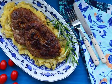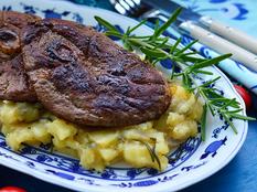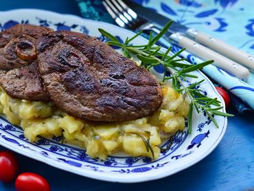 - Ha a krumpli megpuhult, kihalásszuk belőle a rozmaringszárakat, rádobunk egy evőkanál vajat. Állandóan kevergetve megpirítjuk. Tányérra szedjük, a hússzeletekkel tálaljuk.