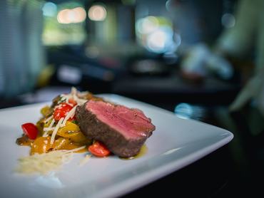 5. Forgassa össze a leforrázott friss tésztával, majd tálalja tányérra a félbevágott bélszín mellé. A koktélparadicsomokat forgassa át a szószos serpenyőben, és díszítse vele az ételt.