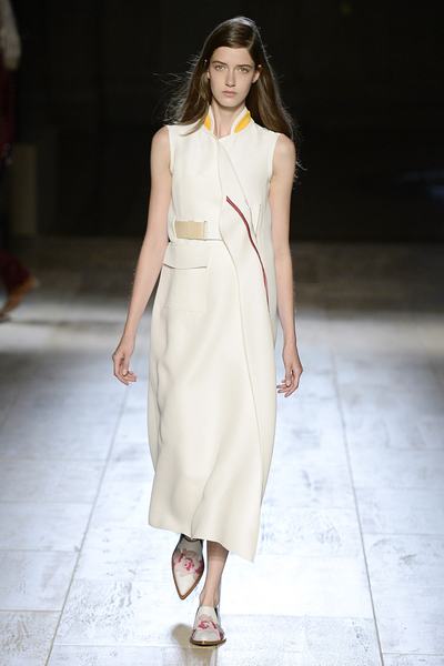 A kollekciót a bézs, fekete és bikavér színek, letisztult vonalak, kicsit maszkulin szabások, és térd alatti hosszak jellemzik, a tervező hű maradt korábbi önmagához:, azaz valószínűleg megint megkapja a kritikát, miszerint kizárólag magas, vékony nőknek tervez. Akárhogy is, cipői valószínűleg olyan fontos celebkiegészítőkké fognak válni, mint több ezer fontos luxustáskái. Nézze meg a bemutatót a galériában!
