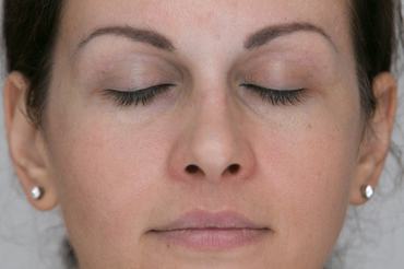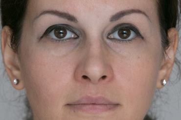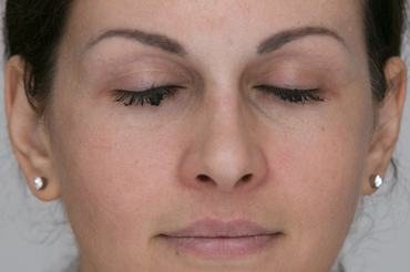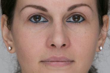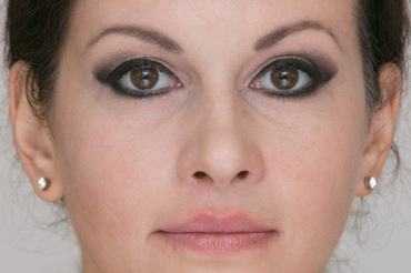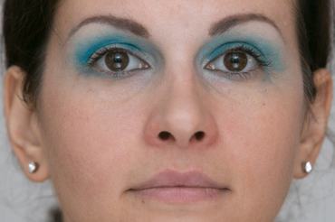 Az előtte fotón látszik, milyen szomorú lesz a modell szeme ettől a sminktől. Ez azért van, mert az "ideális" szemforma felfelé ível, ez a festés viszont lefelé kanyarintja a szemet. Oka az, hogy a legtöbben úgy sminkelünk, hogy becsukjuk azt a szemünket, amin éppen dolgozunk.
