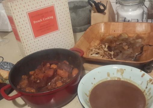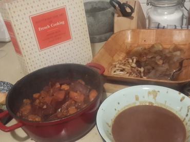 Persze eszembe se jutott vegán verziót keresni a weben – helyette felcsaptam az 1965-ben nyomtatott, cseppet sem drámai címmel ellátott “A francia konyhaművészet mesteri útmutatója” című Julia Child kötetet. Emlékeztem ugyanis: a Julie és Julia című filmben – amelyben Meryl Streep alakítja az excentrikus, imádnivaló, ikonikus sztárszakácsnőt – kiemelt szerepet kap a Child-féle Bourguignon.