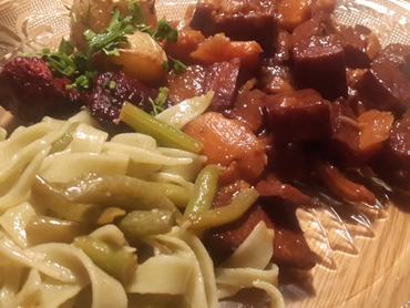 - 3 dl folyadék a barnításhoz – ez lehet zöldség alaplé, izgalmas almalével és sörrel is, de akkor se dől össze az Eiffel-torony, ha vizet használok
