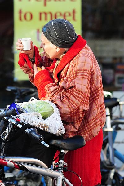 "Mégis milyen társadalom engedi, hogy egy ilyen szegény hölgy egyedül nézzen szembe a közelgő téllel, úgy, hogy csak pár régi szőnyeg fedi testét és egy zokni van a fejére húzva? Ó, várjunk csak. Bocs! Ez nem egy szegény öreg hölgy, hanem egy divatikon! Én hülye. Hogy nem vettem észre a fejjel lefelé felvett kabátban az iróniát és a barna férficipők posztfeminista felhangját?" – írja Vine, aki ezek után hozzáteszi: a generáció egyik legfontosabb tervezőjeként vagyonokat szedett össze abból, hogy hasonló ruhákat árul nőknek, akik persze aztán úgy néznek ki, mint valami dilinyósok.