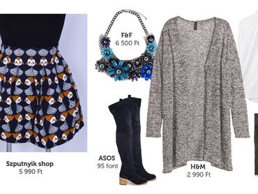 A második szett – a térd fölé érő csizmának illetve a kényelmes és meglepően jó árú kardigánnak köszönhetően – egy fokkal lazább, mint az előző. A statement nyakláncok még mindig menőnek számítanak és az az igazság, ennek mi nagyon örülünk!