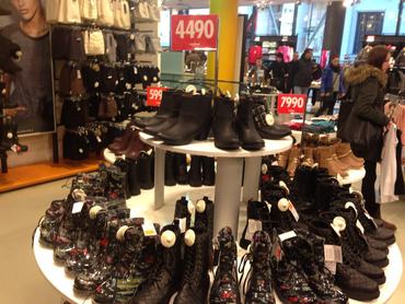 Bosszantó amúgy, hogy már sokminden mérethiányos, a 3500 forintos Mango pulcsi, amit kinéztünk, csak L-es és XL-es méretben létezett, a Zarában a fekete miniszoknyákból meg már csak XS-es volt. Furcsa, de a Calzedonia és a Tezenis még nem kezdte el a leárazást, és az Intimissimiben is csak pár fehérneműszettet áraztak le 30%-kal. Megnéztük a Parfois kínálatát, de ott még egyelőre csak pár táskát adnak 30%-kal olcsóbban. A Primadonna cipőfelhozatala is rég érdekelt minket, de most nem nyűgözött le, amit találtunk.
