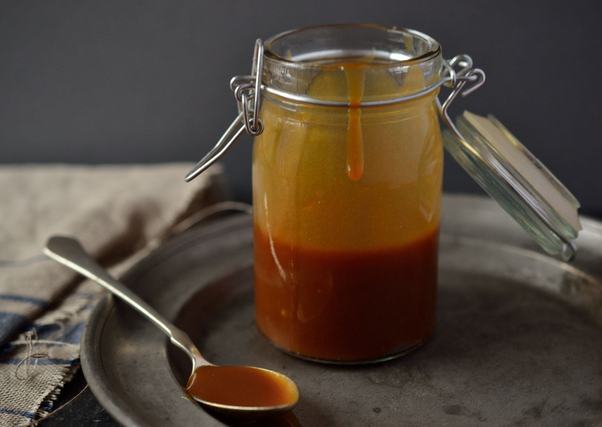 4. Végül hozzákeverjük a vajat. Ha sós karamellszószt szeretnénk készíteni, a sót is most kell hozzákeverni. Befőttesüvegbe töltjük, majd miután kihűlt, hűtőben tároljuk. A hűtőben kicsit szilárdabb lesz az állaga, de mikróban bármikor langyosra melegíthetjük, és akkor ismét visszanyeri a szép folyós állagát.