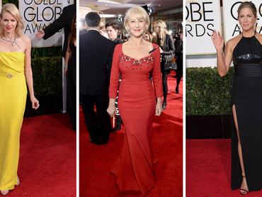 Nehéz volt kiválasztani a sok csinos színésznő és színészfeleség közül a legjobban öltözötteket, de a Huffington Post, a Vogue és a Red Carpet Fashion Awards most is segítségünkre voltak. Furcsa, de nagy kedvencünk, Helen Mirren (a fenti képen középen) nem mindenkinek nyerte el tetszését, pedig remekül állt neki a piros Dolce & Gabbana estélyi – talán még jobban, mint a márka kampányában szereplő imádnivaló idős hölgyeknek a fekete ruhák. Mirren a csillogó ruhához nem vett fel sok ékszert, csak egy pár fülbevalót és egy tollat formázó brosst, mellyel a Charlie Hebdo szerkesztősége ellen irányuló merényletre emlékezett.
