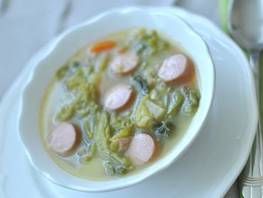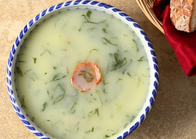 Portugál káposztaleves: eredeti nevén caldo verde. Némileg kifinomultabb, mint a frankfurti leves, próbáld ki mindkettőt!