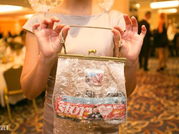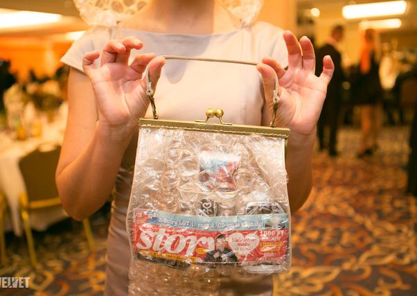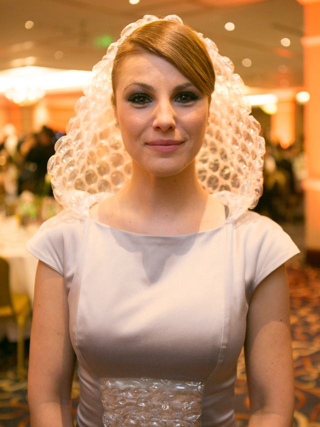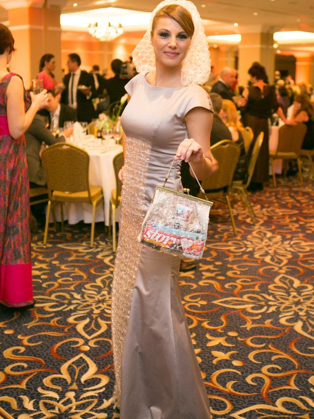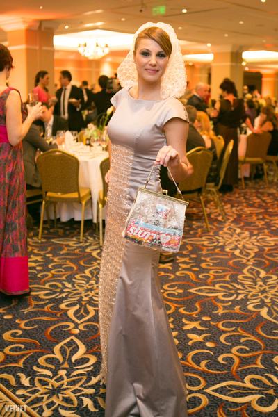 A különleges, buborékfólia-részletekkel és kapucnival megtoldott estélyi tervezője Szilas Rita, akit kifejezetten kedvelünk fantáziadús kiegészítői és ruhái miatt, igaz, rég számoltunk be róla, épp min dolgozik.
