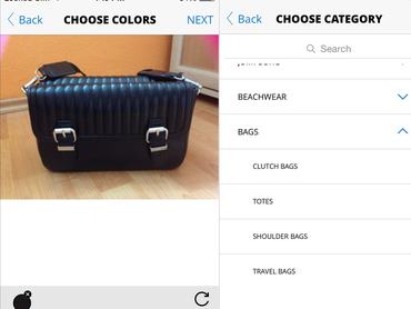 Miután mindent befotózott, adja hozzá az alkalmazáshoz a képeket: utána egyesével meg kell adni mindegyik cucc paraméterét – nem, nem a márkát és az árat. Először is ki kell választani, hogy pontosan mi van a képen: táska, cipő, pulcsi stb., majd ha ráklikkelt a megfelelőre, a lenyíló ablakokból meg kell határoznia, pontosan milyen táskáról van szó: boríték, válltáska, utazótáska és a többi. Esetemben egy sima kis válltáskáról van szó, úgyhogy erre klikkelek.