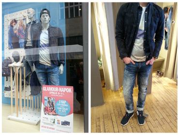 Először a Springfieldbe mentünk, mivel itt a kirakatban nem volt női szett, így csak egy férfit választottunk. A babán egész jól nézett ki a koncepció (póló-ing-zakó), viszont élőben azért bebizonyosodott, hogy nem teljesen praktikus. Az összeállításból leginkább a cipő tetszett. Kattintson a lenti képre és nézze meg, hogy nézett ki mindez felvéve!