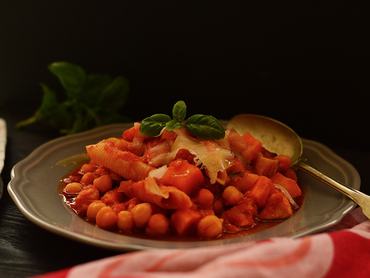 Nem mondom, hogy a csicseriborsós csirkeragu mutatós, mert nagyon nem. Viszont kiadós, laktató, és nagyon csicseriborsós. Ha pedig óvatosan bánunk a tészta mennyiségével, lelkiismeret-furdalás nélkül ehetjük. Nem túl sok hozzávalóból legalább négy felnőtt ember jól tud lakni ebből az adagból.