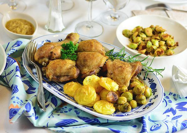 10. Fokhagymás, rozmaringos csirkecomb, hercegnőburgonya, vajas kelbimbó