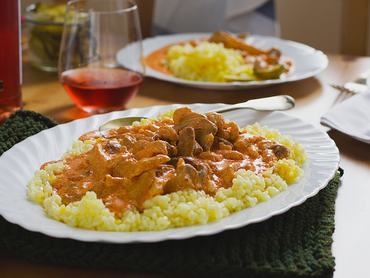 A bakonyi sertésszeletet ki ne ismerné. Én inkább a bakonyi csirkére szavazok. A gomba lehet friss is, de én néha bevetek vegyes gombakonzervet is, amiben 5-6 féle finom gomba van. Ha pedig csíkokra vágjuk a húst, jobban keveredik a gombával, szerintem ez lett az eddigi legjobb verzió, de ezt persze döntse el mindenki maga.