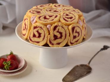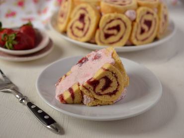 A mi Charlotte tortánk főszereplője most a szezon kedvence, az eper lett: eperlekváros piskótatekercset sütöttünk, majd epres túróhabbal töltöttök meg a tortát.
