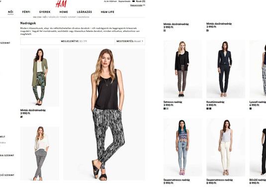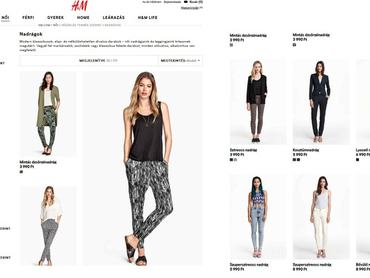 Ami nem tetszett: teljesen esetleges, hogy milyen sorrendben adja ki a találatokat a H&M oldala. Gondolkoztam azon, hogy rendelek pólót is a (mintás) nadrághoz, de mivel csak arra lehetett szűrni, hogy milyen hosszú legyen a felső ujja, egy idő (és a huszonhatodik áttetsző, mintás, vagy extra vastag, esetleg hosszú ujjú felső) után inkább letettem róla. Zavaró még, hogy nem, vagy nem minden böngészőben lehet új lapon megnyitni a találatokat, hogy a leszűkített mezőnyt alaposan áttanulmányozhassam.