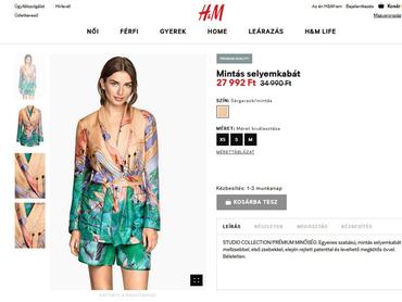 Én például a H&M Studio kollekciójából fogtam ki a Vörösmarty téri üzletben egy elég jó akciót, a 34.990 forintos kimonót ugyanis 12.990 forintért vihettem haza, a hozzá illő sortot pedig 9490 forint helyett 5000-ért kínálták. Persze percek alatt fogyott el az üzletből az akciós készlet, ekkor jutott eszembe, hogy megnézzem, mi a helyzet a webshopban. Ott a kabátka le volt ugyan árazva, de 27992 forintra, ami több mint a duplája annak, amit én fizettem, a sort pedig teljes áron kapható. Megkérdeztük a H&M sajtósát, Forgács Benjámint, hogy lehetséges ez: