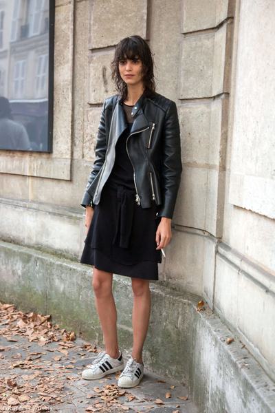 Ha valamit megtanulhatunk a franciáktól, az az, hogy a bőrdzsekivel aligha lehet mellélőni - kivéve, ha mondjuk bőr rövidnadrággal és bőrtoppal hordja. A fekete ruhához így értelemszerűen tökéletesen passzol: visszafogott, ugyanakkor abszolút divatos, ráadásul nem is kell annyira bevállalósnak lennie ahhoz, hogy kipróbálja.