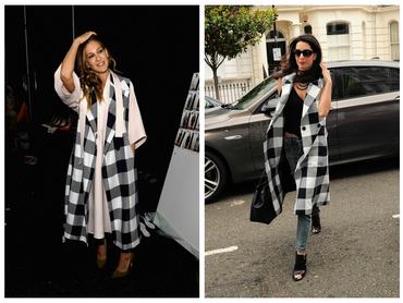 Amal Clooney-t pár hónappal és néhány ezer kilométerrel arrébb fotózták le: ő Londonban sétálgatott az ujjatlan kabátban, amihez fekete színű, dekoltált felsőt, kőmosott farmert és fekete lábbelit vett fel. A szett egészen monokrómra sikeredett, ugyanis a napszemüvege, a pakolós táskája és a nyaklánca is ilyen színű volt. Szerencsére a rúzsa nem: az ajkakra egy fukszia szín került.