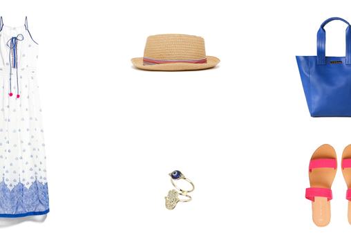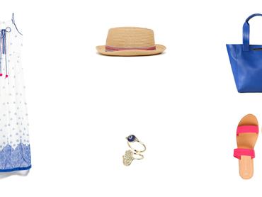 Ha a strandra készül, ezt az összeállítást ajánljuk. A nagy oldaltáskákba mindent bele lehet pakolni, a szalmakalap pedig (valamennyire) megvéd a napsugárzástól. Persze egy könnyed városnézéshez is tökéletes lehet, főleg, ha egy kényelmes papucsot választ hozzá.