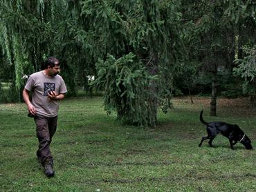 Nyáron csak hajnalban megy ki, mert a kutyák nem bírják a meleget, mondjuk reggel 5-8 közt, esetleg kilencig. Ha nincs meleg, lehet napközben is, akár este is. Konkrét céllal indulunk, egy biizonyos erdőbe, és rendszert csinálunk, ma ide megyek, holnap oda. Ezek az erdők az Alföldön, amikkel mi dolgozunk kicsi, 50-100 hektárosok mindössze, és sok gombász van. De ha elmész egy nagy erdőbe fehér szarvasgombászni, akkor mész 20 kilométert, és találtsz 12 gombát mondjuk. A kutyák ősszel-télen 5-7 órát is bírnak dolgozni. Ez egy olyan munka, amely illeszkedik a viselkedésükhöz: megyünk az erdőben és vadászunk, ez nekik nem megerőltető. Azért ők is lazáznak néha, amikor például telefonálok mondjuk. De amit az ember bír, azt ők is szokták bírni.