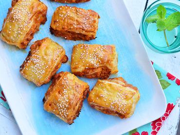 Húsos, sajtos, szezámmagos, gyorsan elkészül, és remek uzsonna vagy vendégváró.