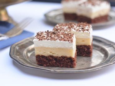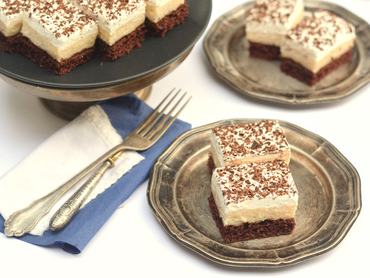 - A tejszínt habbá verjük az utasítás szerint a habfixálóval és a porcukorral, bevonjuk a süteményt, a tetejére reszeljük az étcsokit. Tetszőlegesen kockára vagy nagyobb falatnyi téglalapokra – én így ismerem – vágjuk.