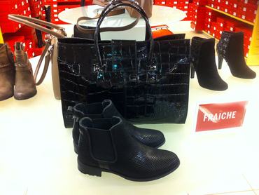 A Humanicban szép lovaglófazonú bőr bokacsizmákat találtunk, de ezeknek meg is kérik az árát. A drágaság itt ne tévessze meg, attól, hogy az egyik cipő csak 7 ezer, a másik viszont 27, simán lehet utóbbi is műbőr, szóval mindig nézze meg rendesen a címkéket!