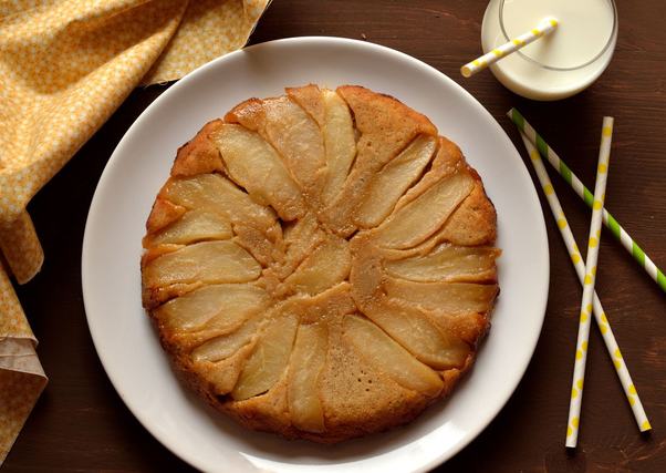 Leggyakrabban almával vagy körtével készülnek az ilyen jellegű sütemények – mi most körtét használtunk, amit előzőleg karamellben pároltunk puhára. A tészta összeállítása csak pár perc, a fahéjas fűszerezése remekül harmonizál a karamellizált körtével!