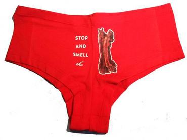 Abszurd, de a márka azt is javasolja, hogy a postások, állatkerti gondozók, állatorvosok, befogók, túrázók és cirkuszi előadók (különösen az oroszlánidomárok) nyilvánvaló okokból kerüljék a fehérnemű viselését. A seattlei márka két tulajdonosa, Justin és Dave azt állítják, hogy egy Nasa által kifejlesztett illatosító technológiát használtak a szalonnás bugyik elkészítéséhez, így az erős hús szag garantáltan benne marad a fehérneműben még jó pár mosás után is. De azért ajánlott szagtalan mosóporral próbálkozni a tisztításkor.