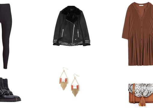 Ha szereti a kényelmes összeállításokat, akkor van még egy ajánlatunk: a leggings és ruha kombinációja is tökéletes, ha nem akarja nagyon kicsípni magát, Ha pedig picit csinosabb szeretne lenni, cserélje le a bakancsot és a bőrdzsekit egy elegánsabb lábbelire és kabátra.