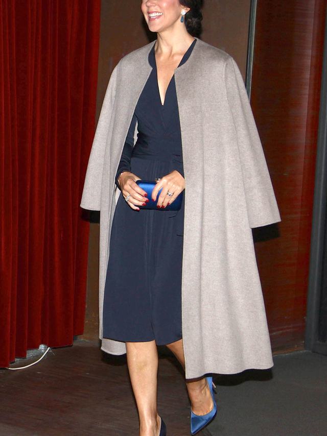 Mária egy sötétkék, térdig érő Issa ruhát vett fel február 4-én Koppenhágában, ahol egy nővérnek adott át díjat a rákos fiatalok gyógyításában végzett munkájáért. A dán hercegnő tengerkék magassarkút, és színben passzoló kistáskát választott a ruhához és a JOSEPH Double kasmír Oslo kabátját terítette a vállára.