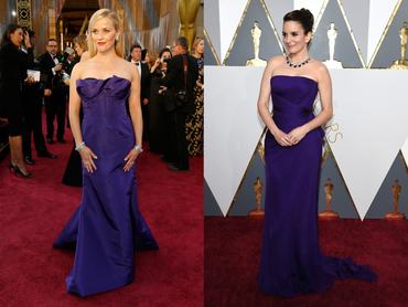 Reese Witherspoon és Tina Fey is úgy döntött, hogy az alkalomra lilába bújik - ráadásul mindketten egy pántnélküli, derékhangsúlyos estélyit választottak. Előbbi Oscar de la Rentában töltötte február utolsó vasárnapját, amihez ezüstékszereket választott. Bár haját kiengedte, de azért hátrafésülte, hogy érvényesülhessen a ruha és bár a sminkje kicsit túl bronzos lett, még így is egész jól áll a három hét múlva 40 éves színésznőnek.