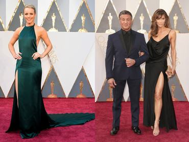 Nemcsak Charlotte Riley érkezett férjével az estre, de Sylvester Stallone neje, Jennifer Flavin is. McAdams-hez hasonlóan ő is lábvillantósban nyomult - igaz, ő nem oldalról, hanem fentről villantotta meg a dekoltázsát. Az ő ruhájának fekete színe volt, amihez pezsgőszínű kiegészítőket választott.