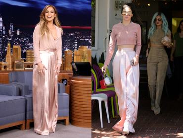 Lopeznek és Jennernek is megtetszett egy Solace London nadrág: a palazzo fazonú alsót Lopez tavaly január 19-én viselte Jimmy Fallon műsorában, hozzá pedig kristály ékszereket és púderszínű felsőt vett fel. (Azt csak zárójelben jegyezzük meg, hogy utóbbi nem sokat bízott a fantáziára.)