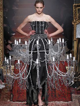 A Moschino, a Dolce & Gabbana és a Schiaparelli tervezőinek köszönhetően csillár, gyertyatartó és porcelán étkészlet is került a ruhákra.