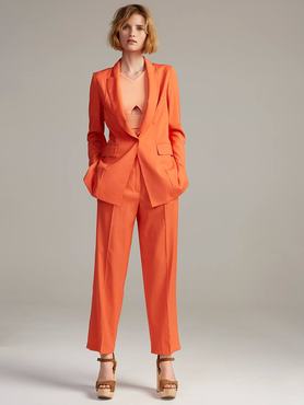 A Je Suis Belle-hez hasonlóan Godena-Juhász Attila és Tóth András márkája, a USE unused is most ünnepelte 10. évfordulóját. A tavaszi-nyári kollekció inspirációforrása az előző évekhez hasonlóan idén is magyar vonatkozású volt, ezúttal Farkas Bertalan munkásságából és a magyar űrutazásból merítettek ihletet a tervezők. A fekete, a bézs, a barack, valamint a narancs színpalettán mozgó kollekcióból szerettük a vállréssznél kivágott mintás blúzokat, a buggyos zsebekkel ellátott bézs szettet és a túlméretezett nadrágkosztümöt is.