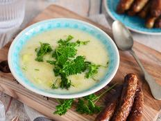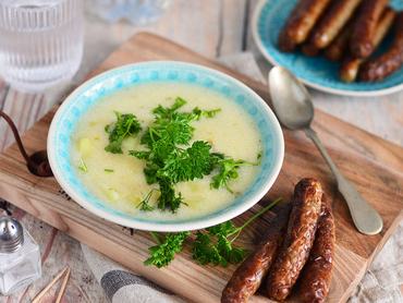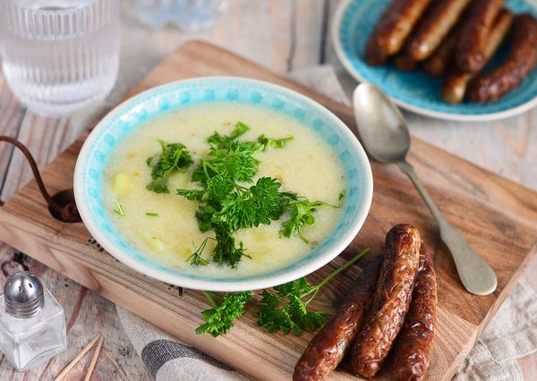 A tejfölös, majorannás, klasszikus verzió nyáriasított kistestvére. Friss újkrumplival, hagymával és rengeteg zöld fűszerrel. Nem tartalmaz lisztet, és a joghurt is alakbarátabbá teszi. Kellemesen savanykás, frissítő főzelék nyári napokra.