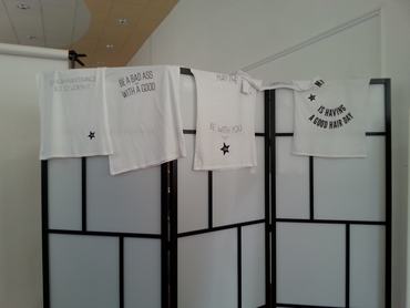 Meg egy csomó éppen száradó felső punci, suna, nuni feliratokkal. Szóval a célközönség nem igazán erőltette meg a fantáziáját, viszont legalább tényleg fogékony volt a puncis pólóra, így egy jó hangulatú esemény kerekedett az akár kínosan is elsülhető marketingfogásból. A szervezők azt mondták, már fél 3-kor kígyózott a bolt előtt a sor, és abban az egy órában, amit ott töltöttünk, nem csökkent kicsit se a tömeg. A csajok nevetgéltek, beszélgettek, pont átjött a lényeg: bátran nevén merte nevezni mindenki azt, ami a lába között van, a kezdeti szégyenlősködés a fél órás sorállás közben abszolút eltűnt és mire eljutottunk a nagyon szépen festő kalligráfus fiúig, aki serényen készítette a sunás felsőket, simán bemondtuk neki, hogy mókus meg piñata.